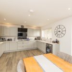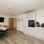 KITCHEN DINER 17' 10" x 13' 1" (5.44m x 3.99m) fitted with a range of wall and base units with square edge quartz work surfaces over; inset 4 ring electric hob with cooker hood over; built-in electric oven; integrated fridge, freezer and dishwasher; plumbing for automatic washing machine; UPVC double-glazed French door to side; UPVC double-glazed window to side; Dining area.