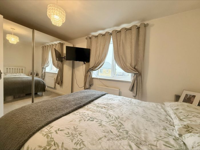 BEDROOM 1 12' 9 max" x 8' 6 max" (3.89m x 2.59m) two UPVC double-glazed windows to front; built-in storage cupboard.
