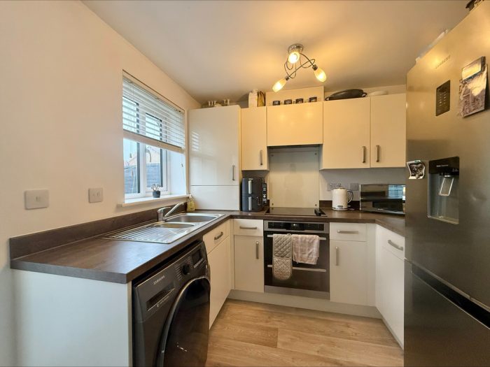 KITCHEN DINER 12' 9" x 8' 1" (3.89m x 2.46m) fitted with a range of wall and base units with square edge work surfaces and upstand over; inset 1½ bowl single drainer sink with mixer tap over; plumbing for automatic washing machine; built-in double electric oven; inset 4 ring electric hob with cooker hood over; space for fridge freezer; UPVC double-glazed window to rear; wall mounted gas-fired central heating boiler. Dining area with UPVC double-glazed French doors to rear.