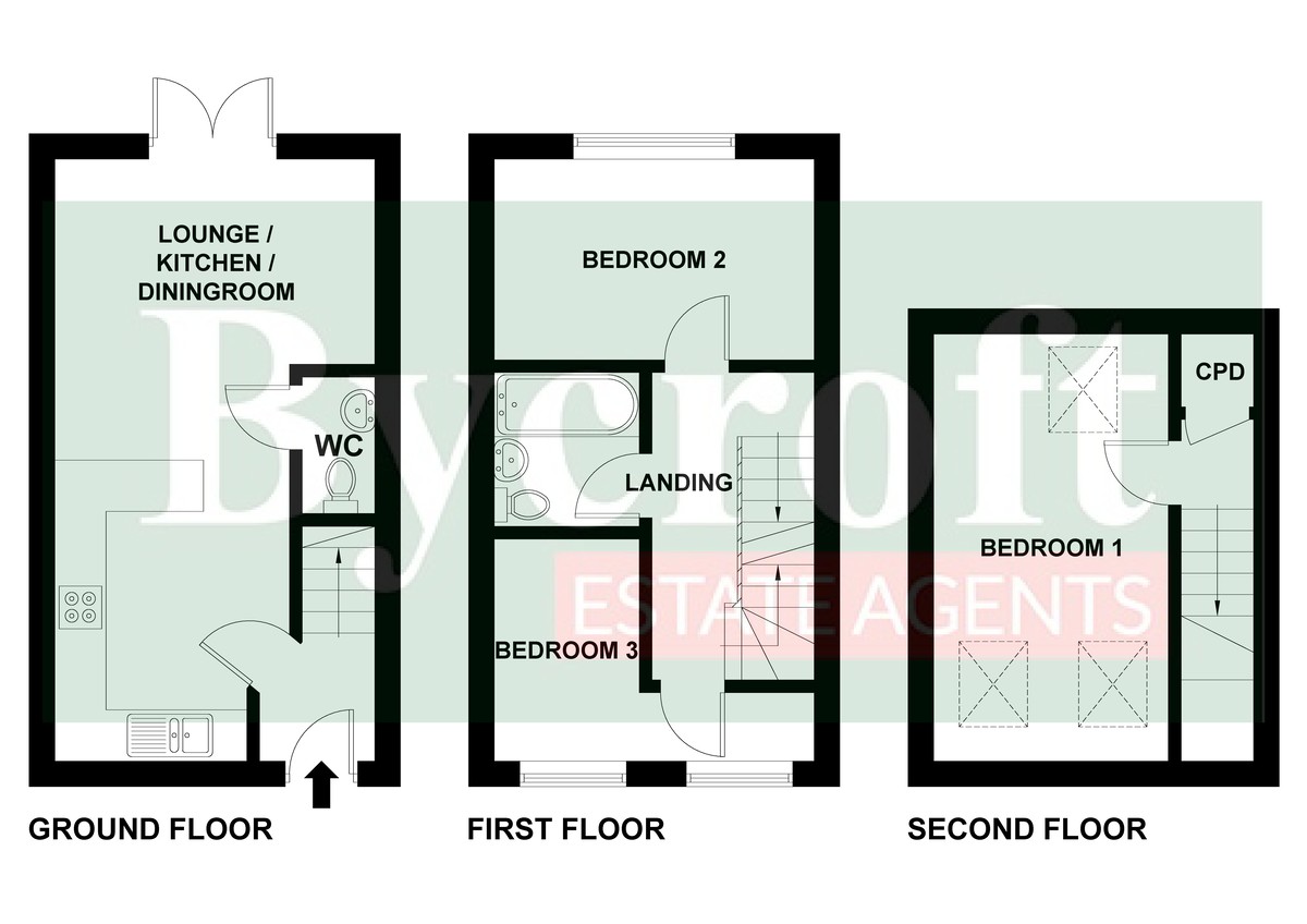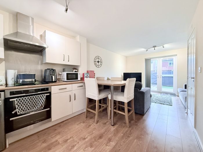 Bycroft Estate Agents are delighted to offer this modern three bedroom, three storey, mid terraced townhouse situated in this popular development close to shops and amenities. Accommodation comprises entrance hall, lounge/kitchen/diner, downstairs cloakroom, first floor landing, two bedrooms, bathroom, second floor landing, main bedroom, front driveway with space for two cars side by side parking, enclosed low maintenance rear garden, gas central heating and double glazed windows. All blinds and light fittings are remaining.