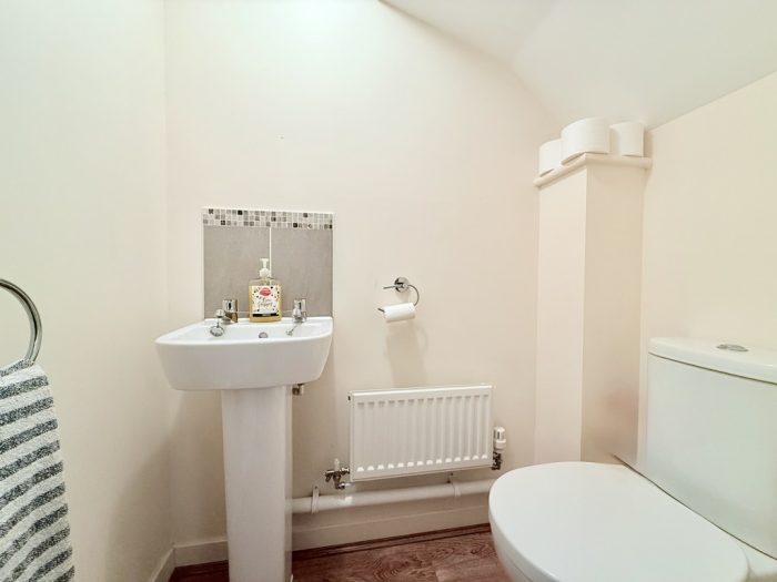 DOWNSTAIRS CLOAKROOM pedestal wash hand basin; wc; radiator; extractor fan.