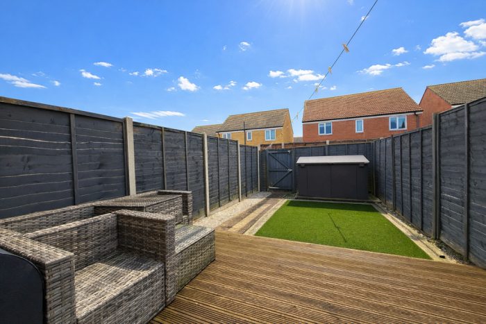 OUTSIDE To the front of the property is a brick weaved drive with space for two cars standing side by side. To the rear of the property is an enclosed low maintenance rear garden with decked patio and artificial lawn.