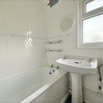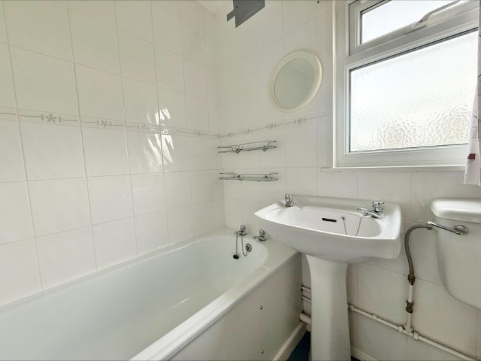 BATHROOM 5' 11 max" x 5' 5 max " (1.8m x 1.65m) fitted with a white suite comprising of pedestal wash hand basin; low level wc; panel bath with wall mounted electric shower unit over; fully tiled walls; UPVC double-glazed window to rear.
