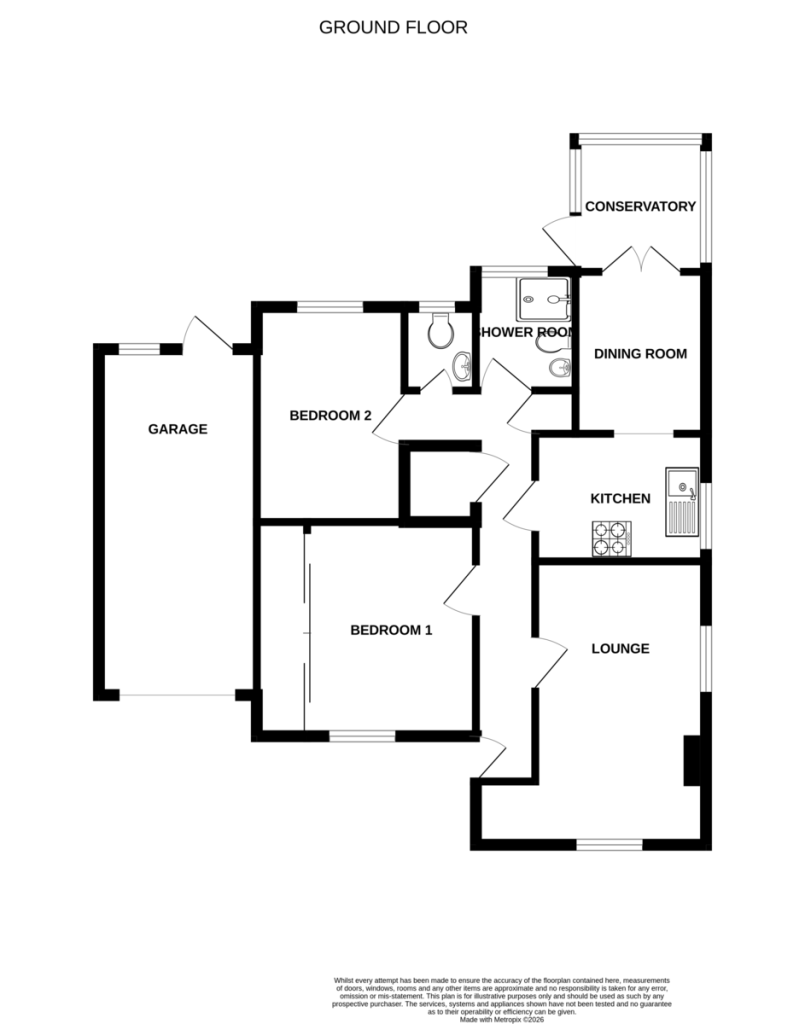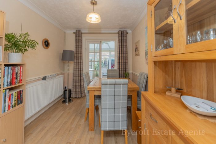 Bycroft Estate Agents are delighted to present this beautifully presented, spacious 2 - bedroom detached bungalow situated in this sought after village location close to shops and amenities. The accommodation comprises of entrance hall, lounge, kitchen, dining room, conservatory, 2 double bedrooms, shower room, separate cloakroom. The property benefits front driveway, garage, enclosed rear garden, gas central heating and double-glazed windows.