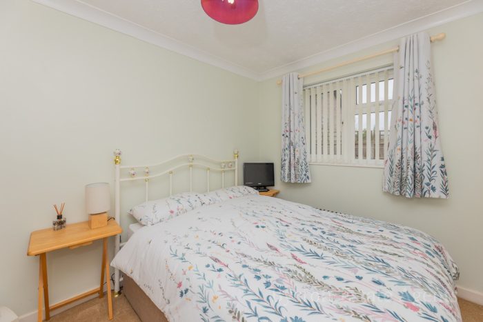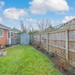 OUTSIDE To the front of the property is a driveway with place for two cars; lawn area, shrubs and plants. To the rear is an enclosed garden with lawn, paved pathway and patio, borders with shrubs and plants, timber storage shed, outside lighting, tap.