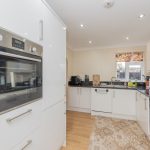 KITCHEN 10' 7" x 8' 7" (3.23m x 2.62m) L-shaped worktop; range of base, cupboards and drawers under; integrated dishwasher and washing machine; pan drawer; stainless steel 1 bowl sink with mixer tap; four ring hob; wall units; light and extractor; further bank of units; integrated fridge freezer; eye-level oven with storage and drawers under; side window; down lights. Large open arch to;