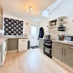 KITCHEN DINER 20' 3" x 11' 5 max" (6.17m x 3.48m) range of base, cupboards and drawers under with worktops; space and plumbing for washing machine, dishwasher, oven and upright fridge freezer; 1 bowl sink with mixer tap; range of wall units; two radiators; under stairs storage cupboard; window and door to rear aspect; Velux roof light.