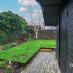 OUTSIDE Low maintenance front garden with off road parking and pathway leading to front door. a side gate with pathway to enclosed, mature south-facing rear garden where Dutch brick paved patios offer alfresco dining opportunities. The terraced garden has been formed from Corten steel, creating ornamental lawns and well-established perennial borders, timber storage shed; outside lighting.