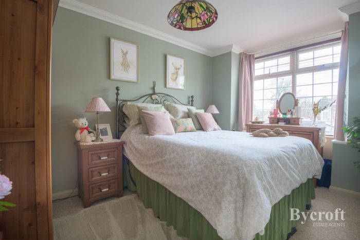 GUIDE PRICE £275,000-£280,000 Bycroft Estate Agents are delighted to present this charming semi-detached chalet bungalow, originally built in the 1930s, has been meticulously renovated to a high specification while preserving its traditional character. Spanning over 1,100 sq ft, the home is set on a tranquil leafy street and features a beautifully landscaped south-facing garden. The inviting entrance leads into a central hallway with limed oak flooring that flows into light-filled reception spaces. The spacious ground floor includes a generous reception room with bay window and a versatile bedroom. At the rear, an open-plan kitchen and dining area boasts hand-built cabinetry and high-end appliances, seamlessly connecting to outdoor patios designed for alfresco dining.