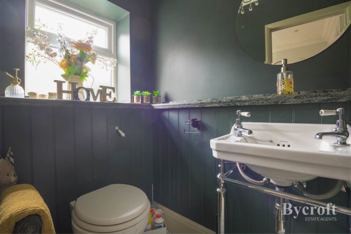 GROUNDFLOOR CLOAKROOM wc with concealed cistern; wash hand basin; frosted double-glazed window; radiator; extractor fan.