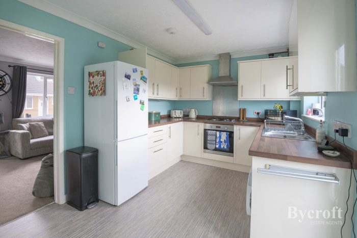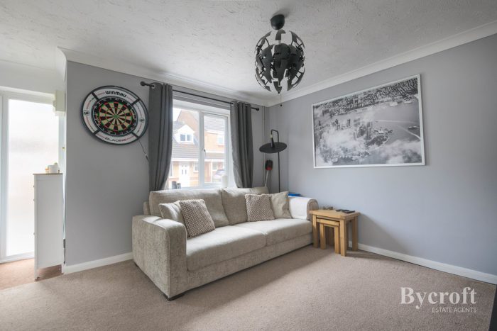 GUIDE PRICE £200,000-£220,000 Bycroft Estate Agents are delighted to present this beautifully presented, two-bedroom, semi-detached house situated in this quiet cul-de-sac location in the popular Cornfields Development close to shops, amenities as well as schools for all ages. Accommodation comprises of lounge, kitchen/diner, landing, two bedrooms, shower room, low maintenance front garden, enclosed south facing rear garden, side driveway with place for two cars standing. CHAIN FREE!
