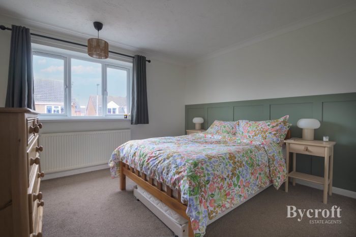 BEDROOM 1 11' 4" x 11' 5 plus storage cupboard" (3.45m x 3.48m) window to front aspect; radiator.