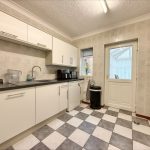 KITCHEN 10' x 9' 11" (3.05m x 3.02m) fitted with a range of wall and base units with square edge work surfaces over; inset single drainer sink with mixer tap over; integrated fridge, freezer and dishwasher; floor mounted oil-fired central heating boiler; built-in double electric oven; inset four ring electric hob with cooker hood over; tiled splashbacks; pull-out larder cupboard; UPVC double-glazed window to rear; UPVC double-glazed door to Conservatory.