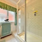 SHOWER ROOM 7' 2" x 6' 1" (2.18m x 1.85m) UPVC double-glazed window to side; fitted with a white suite comprising of a pedestal wash hand basin, low level wc, walk-in shower cubicle with sliding shower screen door and wall mounted electric shower unit.