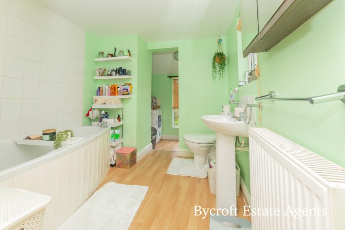 BATHROOM 7' 8" x 7' 0" (2.34m x 2.13m) bath with mixer tap and wall mounted shower; hand wash basin; wc; UPVC double glazed window to side aspect.
