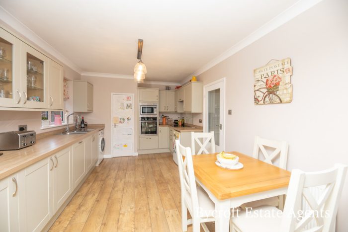KITCHEN/DINER/DAY ROOM 27' 11" x 10' 4" (8.51m x 3.15m) Kitchen area with fitted Shaker style kitchen with a good range of cupboards and drawers including integrated dishwasher; space and plumbing for washing machine; space for fridge; eye level Neff slide oven with microwave above; integrated four ring hob; good range of wall units including double glass fronted display unit; light and extractor fan; shelved larder cupboard; storage cupboard with water softener; radiator; side window. Day room - upvc windows overlooking the beautiful rear garden; French doors leading to rear; radiator; downlights.