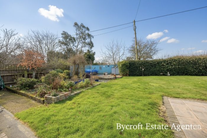 OUTSIDE To the front of the property is a brick weave driveway with space for several cars standing; low brick walling; lawned area with shrub and plant borders. Pathway to front door. Double gates providing vehicular access into the rear garden. Hardstanding area for boat or caravan. Enclosed good size mature rear garden which is mainly lawned with paved patio areas; shrubs and plants bordering. Timber shed with light and power. Feature Koi Carp pond. Further raised borders with shrubs and plants. Further gate leading to front.