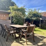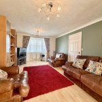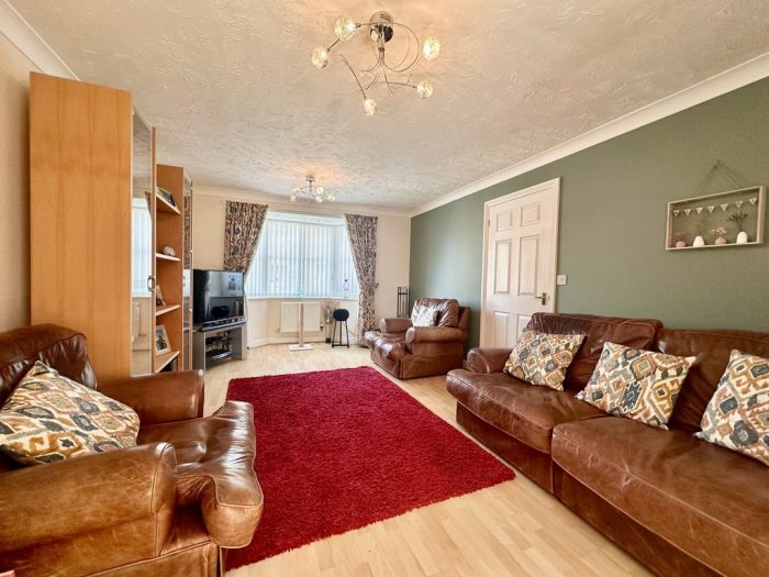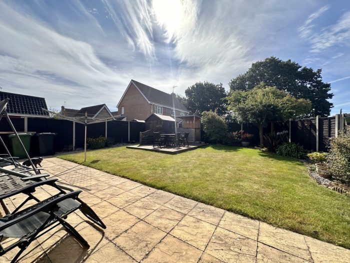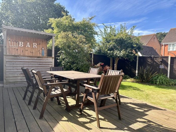 OUTSIDE To the front of the property there is a garden area with lawn, brickweave driveway leading to a garage and pathway to the canopied front entrance. Side access gate and pathway to the beautifully presented, enclosed, rear garden with full width paved patio, side pathway leading to shed, lawned area, raised decked patio with built in timber bar, borders with shrubs and plants, outside wall lights and cold tap.