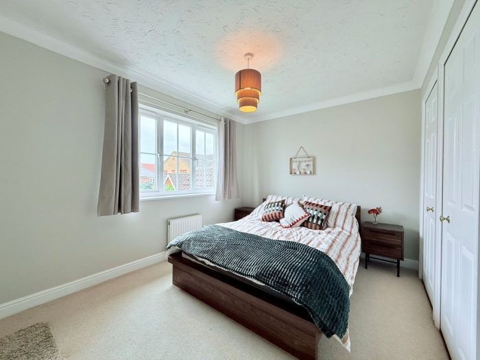 BEDROOM 3 8' 2" x 7' 8" (2.49m x 2.34m) plus two built in double wardrobes; window to rear aspect; radiator.