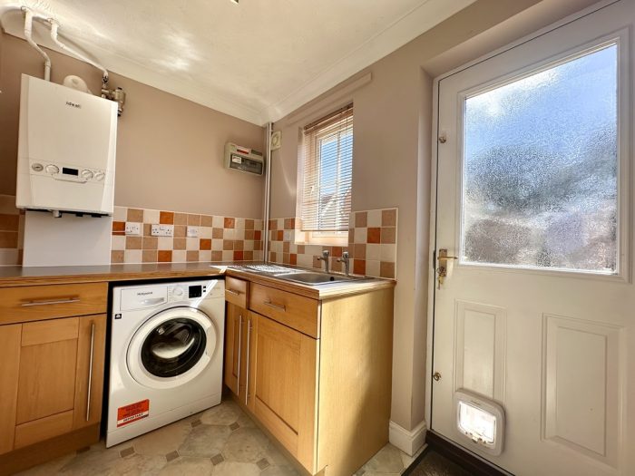 UTILITY ROOM 8' 3" x 5' 7" (2.51m x 1.7m) l-shaped worktop with base cupboards and drawers; space and plumbing for washing machine; one bowl sink; radiator; recently installed Ideal gas combination boiler; window to rear aspect; door to rear; door into Garage.
