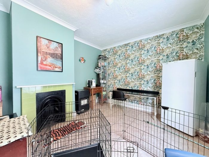 DINING ROOM 12' x 11 max' (3.66m x 3.35m) cast iron fireplace; tiled flooring; window to rear aspect; radiator.