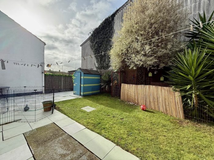 OUTSIDE The front forecourt with low brick walling and iron gate. To the rear is an enclosed rear garden with paved patio, lawn, shrubs and plants, double gates providing vehicle access if required.