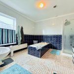 BATHROOM spacious bathroom with pedestal wash hand basin; wc; bath; shower cubicle; fully tiled walls; rear window; radiator; cast iron fireplace; extractor fan.
