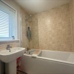 FAMILY BATHROOM 7' 5" x 5' 5" (2.26m x 1.65m) fitted with a white suite comprising of a low level wc, pedestal hand wash basin with mixer tap over, panel bath with mixer tap, shower screen and wall mounted electric shower unit over, UPVC double glazed window to side, extractor fan, heated towel rail radiator.