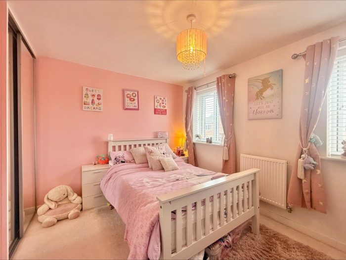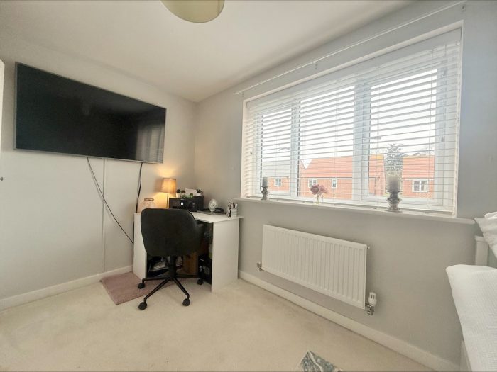 BEDROOM 2 11' 10" x 11' 2 max " (3.61m x 3.4m) fitted wardrobe, two UPVC double glazed windows to front.