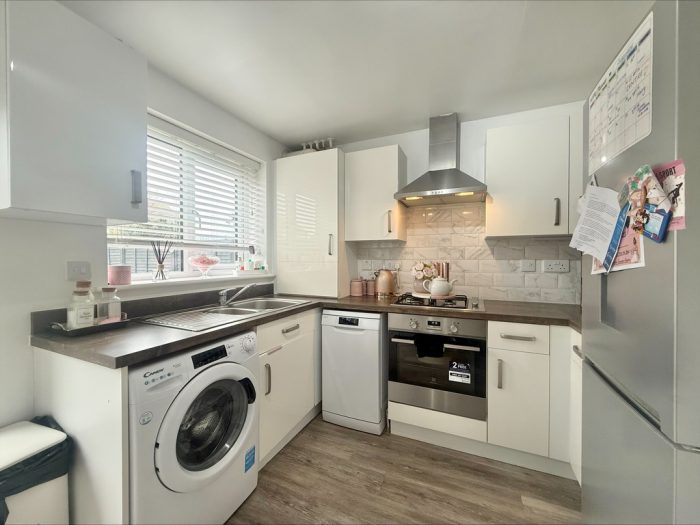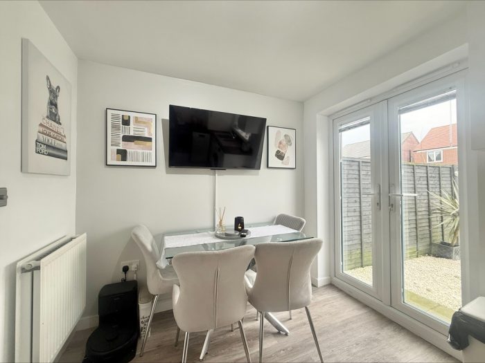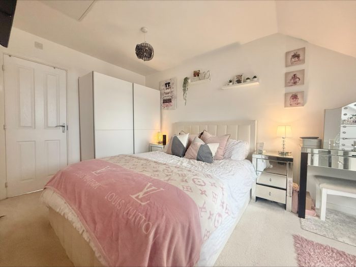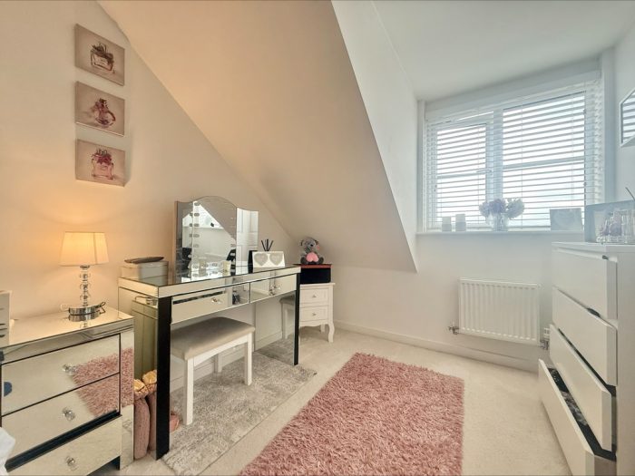 OUTSIDE To the front of the property is a garden area laid mainly to lawn with paved pathway approach, driveway parking area providing off road parking for two cars. To the rear of the property is an enclosed garden area laid mainly to lawn with low maintenance shingle seating area and border, paved pathway and side gate gives access to the side garden area and covered storage area, outside tap and wooden decked area.