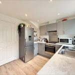 KITCHEN DINER 15' 4 max " x 8' 9 max " (4.67m x 2.67m) fitted with a range of wall and base units with square edge work surfaces over, inset four ring electric hob with cooker hood over, stainless steel splashback, built-in electric oven, space for fridge freezer, plumbing for automatic washing machine and dishwasher, inset stainless steel 1½ bowl single drainer sink with mixer tap over, UPVC double glazed window to rear, UPVC double glazed French door to rear.