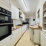 KITCHEN 14' 0" x 6' 0" (4.27m x 1.83m) mixture of wall and base units with double eyeline oven, gas hob, extractor fan, Butler style sink, UPVC window, radiator, space for fridge/freezer.