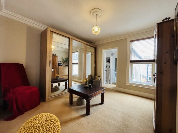 BEDROOM 2 12' 0" x 11' 0" (3.66m x 3.35m) currently used as a wardrobe room, UPVC window to the rear, radiator, over stair cupboard, access into dressing room.
