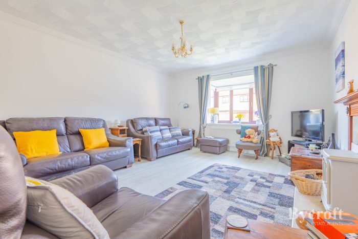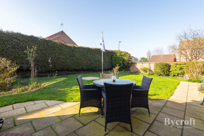 OUTSIDE To the front of the property is a driveway with space for 3/4 cars standing, lawn area and shrubs, block pave area to front door and garage, gate and pathway round to rear. Enclosed rear garden area laid mainly to lawn, patio and pathways, well-stocked shaped borders and outside tap and lighting.