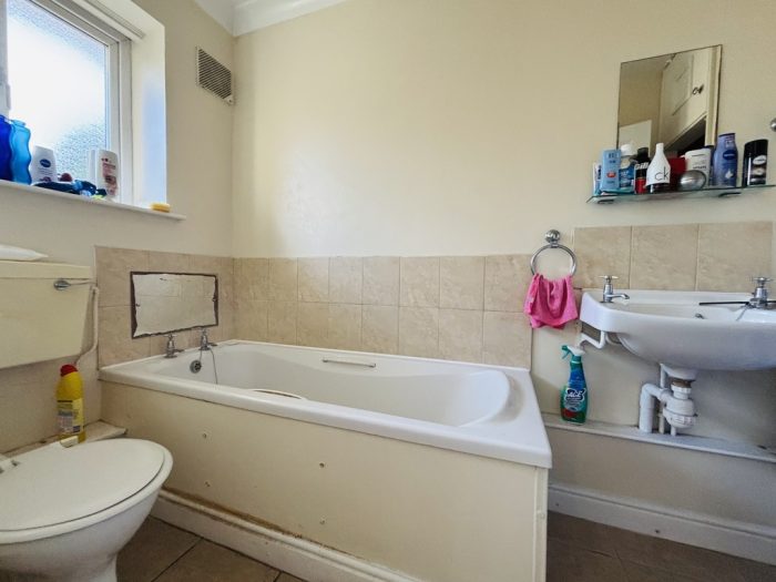 BATHROOM 8' x 4' (2.44m x 1.22m) upvc window; radiator; bath; low level wc; wash hand basin; storage cupboard.