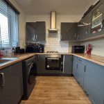 KITCHEN 10' x 8' (3.05m x 2.44m) modern finish, gas hob, electric cooker, space for washing machine and fridge freezer, mix of base and wall units,1½ bowl, UPVC window to front aspect, radiator, large airing cupboard housing the gas Combi boiler (installed cerca 2025).