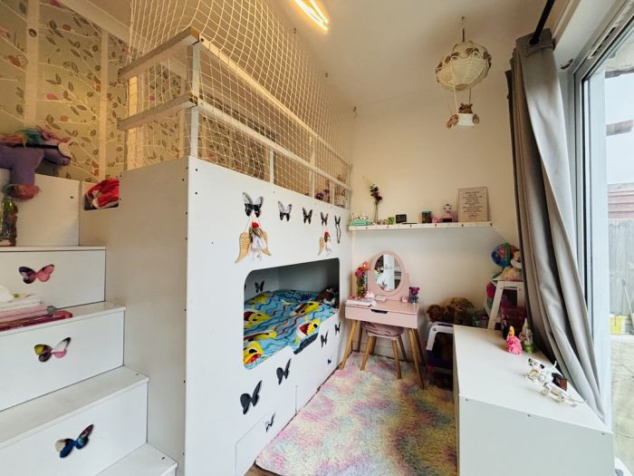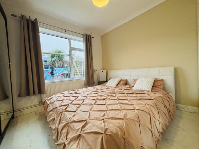 BEDROOM 1 11' x 11' (3.35m x 3.35m) large UPVC window overlooking the rear garden, radiator, laminate flooring.