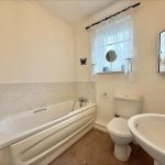 BATHROOM 10' 11 max into shower" x 6' 7" (3.33m x 2.01m) fitted with a white suite comprising of a pedestal hand wash basin, low level wc, panel bath with shower mixer tap over, separate shower cubicle with wall mounted shower unit, tiled splashbacks, UPVC double glazed window to side, extractor fan.