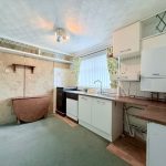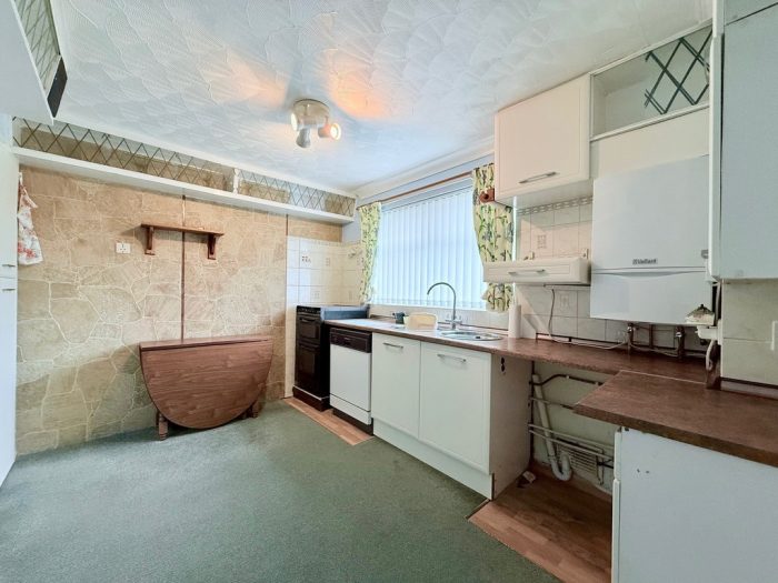 KITCHEN DINER 11' 9" x 8' 8" (3.58m x 2.64m) worktop, range of base and cupboards, space and plumbing for washing machine, dishwasher and oven, circular 1 bowl sink with mixer tap, wall units, Valient gas boiler, built-in understairs storage cupboards, window to rear aspect, radiator.