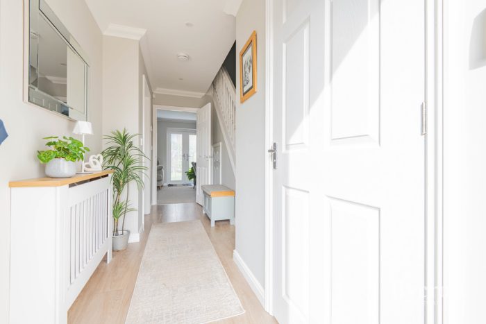 ENTRANCE front door, spacious entrance hall, stairs to first floor, understairs storage cupboard, radiator