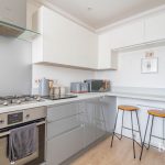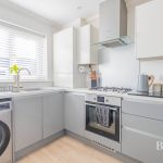KITCHEN 10' 11" x 8' 1" (3.33m x 2.46m) U-shaped worktop/breakfast bar, range of base, cupboards and drawers; built-in oven, space and plumbing for washing machine, integrated slimline dishwasher, space for upright fridge freezer, range of wall units, light and extractor, cupboard housing Valient gas boiler, window to front aspect, radiator, downlights.