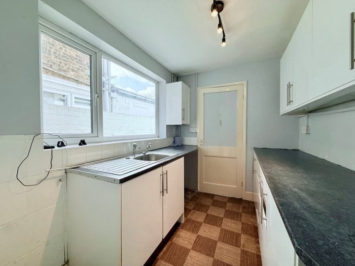 REAR HALL UPVC rear door, space for upright fridge freezer. Door into;
