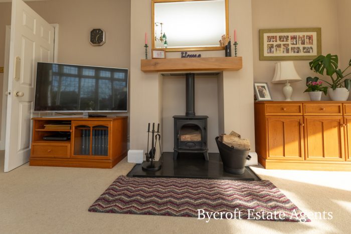 LOUNGE 28' 6" x 12' 0" (8.69m x 3.66m) UPVC double glazed windows to both sides and rear aspects; wood burner.