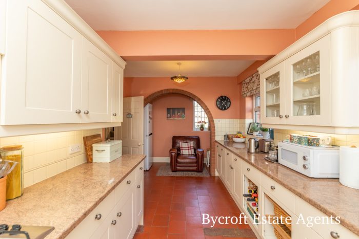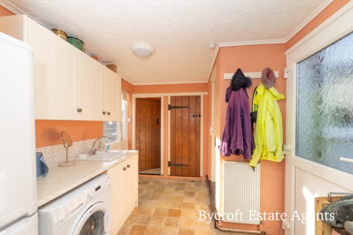 UTILITY 10' 11" x 8' 3" (3.33m x 2.51m) fitted with modern wall and base units; sink drainer; plumbing for washing machine; space for white goods; UPVC double glazed window and door to front and rear aspects; door to cupboard housing boiler.
