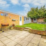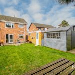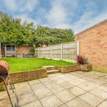 SINGLE GARAGE electric roller door, light and power, UPVC personal door into garden, gate from driveway into good sized enclosed rear garden, full width paved patio, lawn, further patio area, timber shed and summer house.