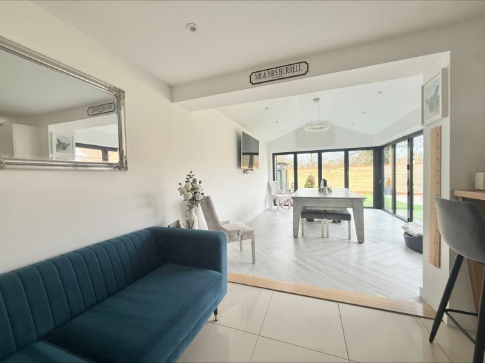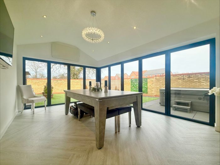 GARDEN ROOM /DINING ROOM 16' 11" x 12' (5.16m x 3.66m) vaulted ceiling, double glazed bi-folding doors to rear and side aspects.