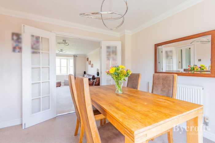 Bycroft Estate Agents are delighted to present this nicely presented, 3 bedroom, detached family house situated in this popular sought after location close to shops, amenities and easy traveling distance from schools for all ages. The accommodation comprises entrance hall, cloakroom, lounge, dining room, kitchen, utility, three bedrooms with en-suite to principal and bathroom. The property benefits from front and rear gardens, driveway, integral garage with EV charging point.